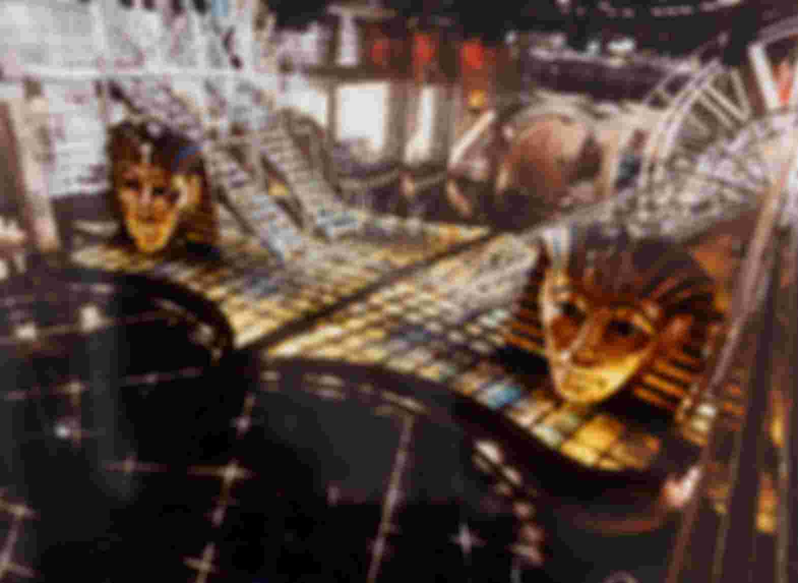 When Trocadero closed in 1989, the nightclub Tunneln took over. Abelardo Gonzalez created an equally spectacular environment, now inspired by ancient Egypt, with desert sand and Tutankhamun statues. A selection of the drawings behind Tunneln is shown, along with one of the club’s characteristic lamps—also designed by Abelardo Gonzalez.