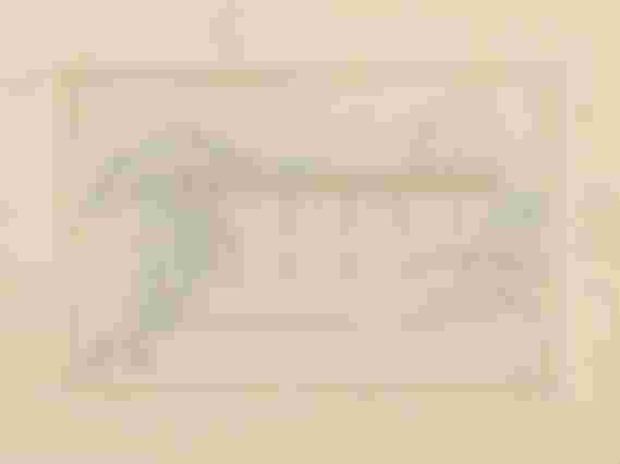 Arbetarbostäder kv Stativet och Tumstocken, Stockholm. Akvarell på papper. 1917. Gunnar Asplund. ArkDes samling.