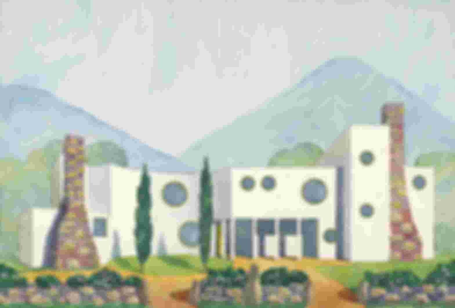 Akvarell av hus till Trude Waehner, 1950-tal. Josef Frank. ArkDes samling.